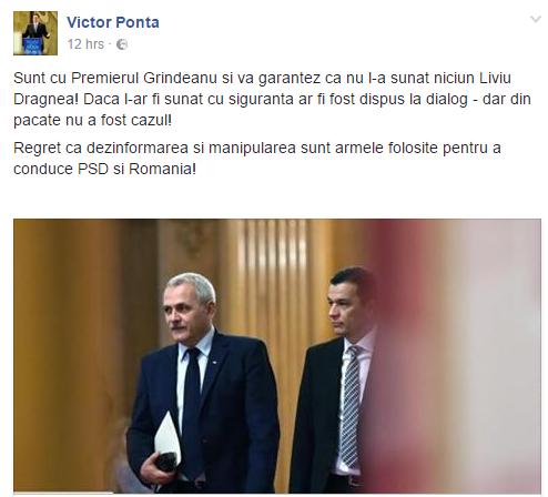 Informația a fost infirmată de Victor Ponta prin intermediul unei postări pe Facebook.