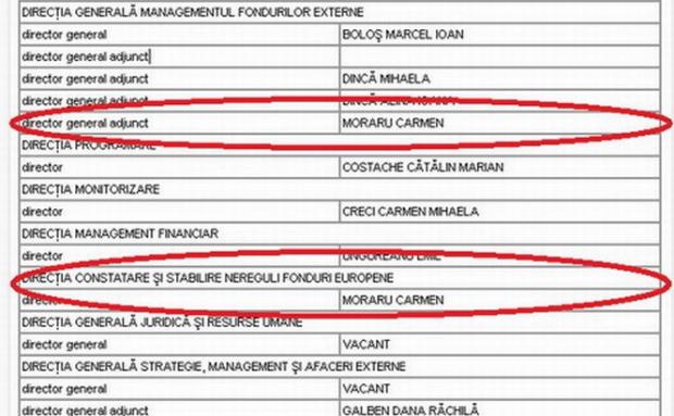 "După ce a participat, conform inspectorilor anti-fraudă europeni, la încercarea nereuşită de a deconta ilegal 1,5 milioane de euro din bani europeni, Carmen Moraru, director general în Ministerul Elenei Udrea, a fost numită <director la Direcţia Constatare şi Stabilire nereguli fonduri europene din Ministerul Transporturilor>, scrie Tolontan pe blogul său.
