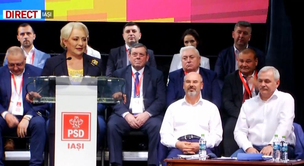 „Am văzut astăzi un așa zis lider de partid care și-a permis să jignească femeile din PSD, iar acest lucru este de neacceptat. Un om care jignește femeile este un om slab. Să nu uite că a jignit astăzi multe femei, mame, soții, fiice și cred că acest lucru nu-i face onoare. Eu îi recomand să le trateze cu respect pe femeile din PSD și pe toate femeile din România, pentru că sunt mai puternice decât el și mult mai determinate. (...) Tot acest om, tot acest lider, care vrea să aducă voturi pentru partidul lui, în lipsa proiectelor pe care nu le are a venit cu lozinci care nu fac cinste sau care dovedesc că memoria nu-l ajută. „PSD sărăcește România”. Oare? A uitat acest lider ce a făcut partidul lui? A uitat acest lider câtă suferință a adus pensionarilor, părinților și bunicilor noștri? Noi nu am uitat și românii nu uită” a spus Viorica Dăncilă la Iași.