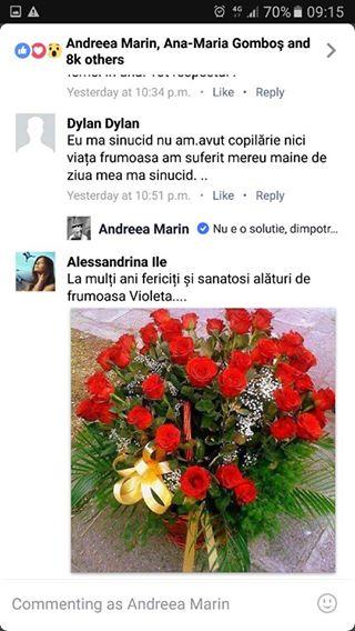 „APEL URGENT!!! Buna dimineata, am primit ieri si am citit in aceasta dimineata mesajul de mai jos scris de detinatorul contului de facebook Dylan Dylan, in care se pare ca un tanar deznadajduit ameninta ca astazi, de ziua sa, se va sinucide. Exista doua posibilitati: mesajul poate fi adevarat sau nu. Am decis sa nu trec mai departe cu indiferenta odata ce am citit acest mesaj ( avand mii de mesaje, nu intotdeauna reusesc sa le vad, din pacate), am hotarat asadar sa fac tot ce imi sta in putere sa evit un deznodamant tragic, caci zilnic astfel de intamplari chiar sunt duse la capat, mai cu seama printre adolescentii insingurati sau provenind din familii care nu le cunosc dramele interioare. Analizand contul de facebook, am vazut ca aceasta persoana scrie de multa vreme trist si cu ideea de sinucidere, isi cere iertare catre cei pe care poate i-a suparat si ii iarta pe cei ce i-au adus tristete, iar astazi dimineata scrie clar ca in aceasta seara se va sinucide si mama sa nu stie ce are de gand sa faca. Intrucat nu exista poze cu persoana in cauza, nici date concrete de identificare, nu poate fi contactata, dar in urma unei investigatii amanuntite URGENTE, pentru ca timpul se scurge cu rapiditate, poate fi salvata o viata. De exemplu, poate fi un prim indiciu o fotografie facuta de la geamul unui bloc, cel mai probabil locuinta persoanei, care arata imprejurimile si cerul cu nori, din nou cu o sugestie in text legata de sinucidere, dar important este ca astfel poate fi facuta localizarea. Cu cateva zile in urma, persoana dadea share unei postari a Stirilor ProTV despre sinuciderea unui DJ care si-a anuntat pe facebook intentia, se pare ca astfel ideea a incoltit in mintea sa. Am facut deja sesizarea la Sectia 2 de Politie Bucuresti, unde am comunicat direct cu domnul subinspector Mihai Radoi si cu doamna agent sef adjunct Gabriela Buleandra, domnia sa mi-a dat un numar de telefon si un mail la care puteti trimite orice indiciu care ar putea ajuta la gasirea si salvarea persoanei cu tentativa de suicid: 021/2229601 sau 021/3153534 cu interior 27820, email [email protected] , va rog sa scrieti la subiect "Urgent! Caz suicid" . Fac apel la colegii din presa si televiziuni sa ajute prin mijloace jurnalistice ce pot duce la identificare. Puteti trimite eventuale indicii si aici, dar vor exista ore in care nu voi putea urmari contul de facebook si fiecare clipa poate fi importanta pentru salvarea unei vieti. Va multumesc! Pretuiti viata!”