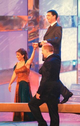 Iar Dan Negru ataşează postării sale un instantaneu dintr-o emisiune de la Antena 1 care îi înfăţişează pe cei doi mari antrenori ajutăndu-l să "evolueze" la bârnă:
