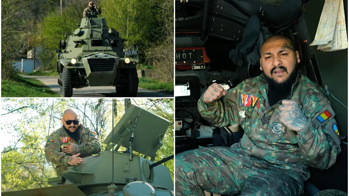 La turelă a stat chiar protagonistul clipului, manelistul Dani Mocanu. La un moment dat, blindatul a lovit mai multe maşini, iar imaginile surprinse de martorii oculari au devenit virale pe reţelele de socializare.