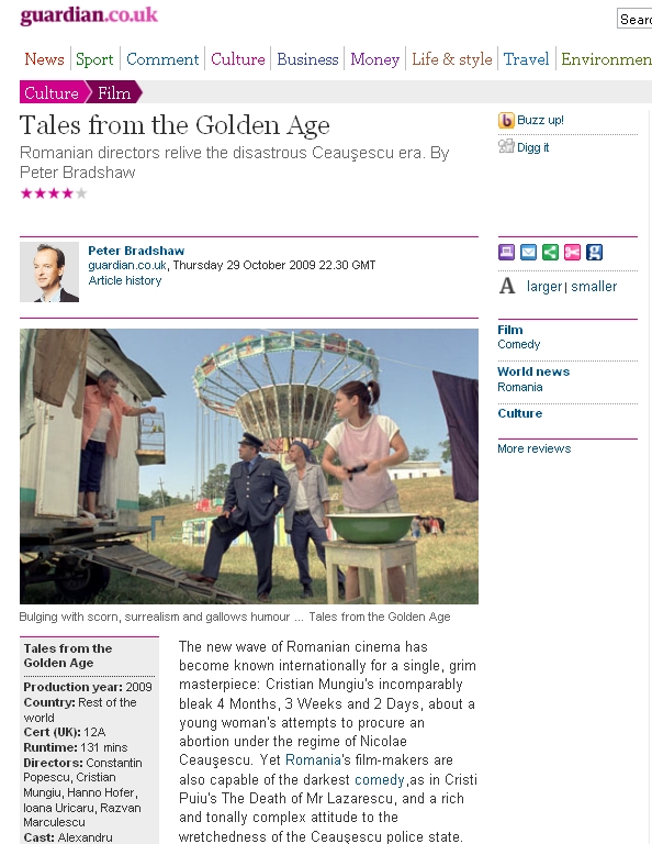 Noul film al lui Cristian Mungiu este unul într-o notă ceva mai uşoară şi mai comercială, în comparaţie cu precedenta peliculă, şi vine la timp pentru aniversarea de 20 de ani de la căderea regimului Ceauşescu, scrie publicaţia britanică.
