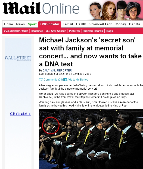 Potrivit presei internaţionale, Michael Jackson ar fi recunoscut, în 2004, că el era tatăl lui Omer Bhatti.