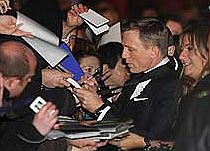 Daniel Craig a sosit îmbrăcat aidoma personajului căruia îi dă viaţă în ?Quantum Of Solace?, dar cu mâna dreaptă prinsă discret într-un bandaj negru. Actorul în vârstă de 40 de ani s-a accidentat în timpul filmărilor.