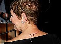 Judi Dench a purtat o rochie cu un decolteu generos iar la spate se putea zări un tatuaj temporar realizat cu diamante care alcătuiau sigla 007. Judi Dench o interpretează în film pe M.