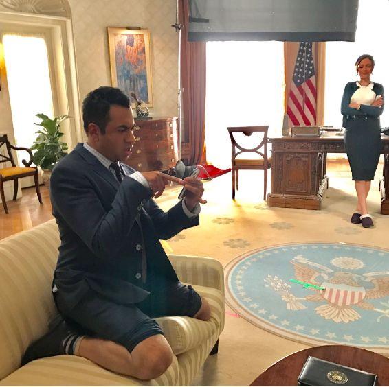 Revenit pe platourile de filmare, actorul apare într-un nou serial de televiziune numit „Designated Survivor“ și a postat o imagine în care imită poziţia consilierei.