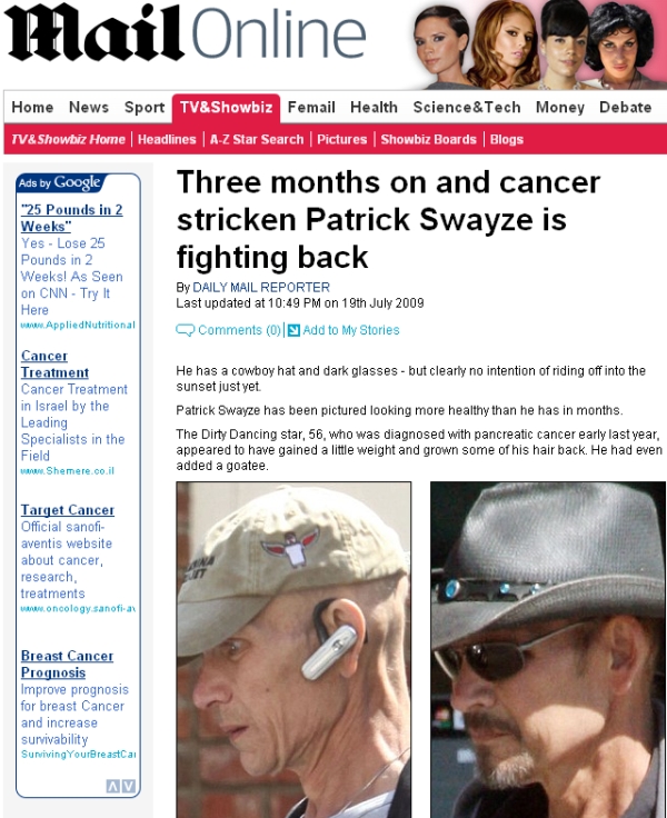 În ianuarie 2008, starul din "Dirty Dancing" a fost diagnosticat cu cancer pancreatic în stare avansată. Actorul a urmat o formă agresivă de chimioterapie, precum şi un tratament bazat pe un medicament experimental.