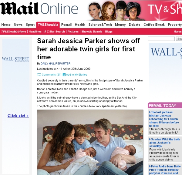 Sarah Jessica Parker şi Matthew Broderick au deja un fiu de şase ani. Cei doi s-au căsătorit în 1997.