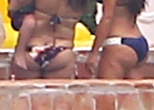 Kim şi Kourtney Kardashian au fost fotografiate în timp ce se aflau la piscină, însă imaginea lasă de dorit: posterioarele lor, atât de sexy în pictoriale, ies pur şi simplu din bikini, iar picioarele sunt pline de celulită.