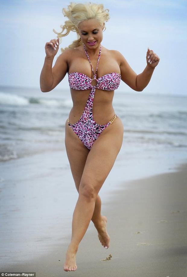 Coco a fost fericită să-şi arate silueta voluptoasă şi chiar a decis să alerge de-a lungul apei, cu riscul de "a-şi pierde pe drum" costumul cochet.