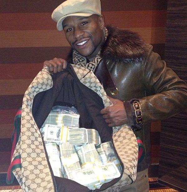 Astfel, pe contul său de Instagram sau Facebook, pugilistul postează avuţiile sale: sacoşe pline cu bani, sute de perechi de pantofi, haine de firmă, bijuterii, ceasuri, maşini de colecţie şi chiar avioane private.