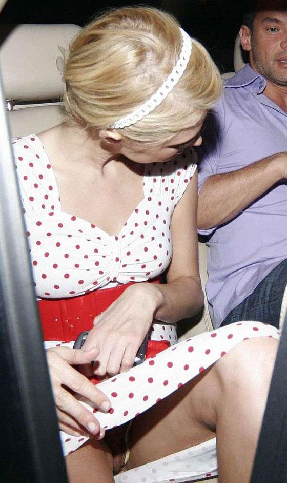 De această dată, frumoasa moştenitoare a unui imperiu de milioane şi-a făcut apariţia într-o rochie albă cu buline roşii, şi înainte să iasă din maşină părea la fel de drăgălaşă ca Scufiţa Rosie, dar când a făcut pasul.... totul s-a schimbat.