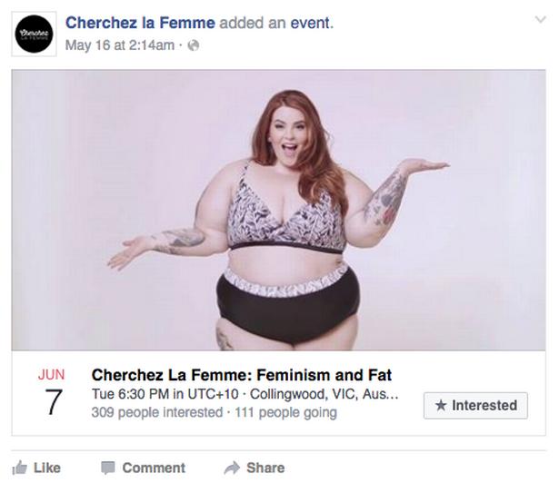 Celebrul model a invitat la o conferință pe tema ”feminismul și condiția de a fi grasă”, care a fost promovată pe Facebook, scrie Mirror.