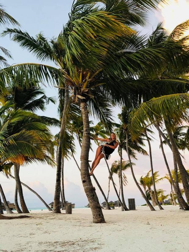 De această dată artista s-a lăsat fotografiată într-un palmier, însă cuprinsă de frenezia momentului a uitat că este îmbrăcată cu niște panataloni scurți minusculi.