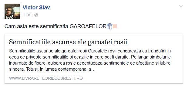 După ce a fost criticat, Victor Slav a postat un mesaj despre semnificația garoafelor.