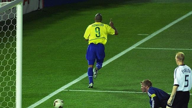 În minutul 67, Rivaldo a trimis un şut banal din afara careului. Aproape central şi nu foarte puternic. O formalitate pentru un portar precum Kahn. Dar, inexplicabil, germanul a scăpat mingea în faţă. Pe fază, Ronaldo a apărut în faţa porţii şi a marcat. 1-0 pentru Brazilia şi începutul sfârşitului pentru Germania. Peste 11 minute, Ronaldo a făcut dubla, după o acţiune superbă. Kleberson a avansat pe partea dreaptă, a centrat pe jos la marginea careului, Rivaldo a sărit peste minge, iar nouarul brazilian a plasat elegant mingea lângă bară pentru 2-0.