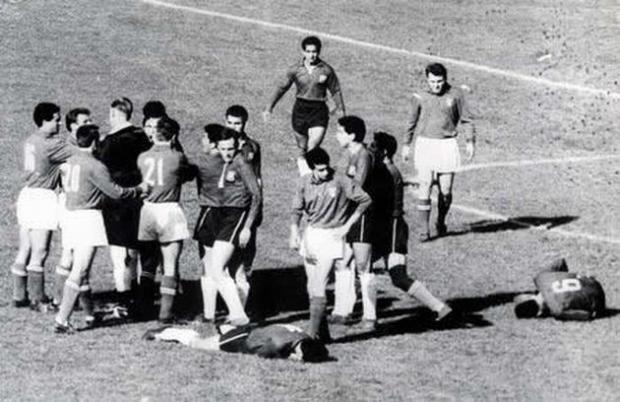 Starea de nervozitate s-a transmis şi fotbaliştilor, astfel că primul fault s-a petrecut chiar în secunda 12 a meciului. Violenţele au continuat, în special din partea italienilor, şi, inevitabil, arbitrul englez Ken Aston a eliminat doi jucători ai squadrei azzurra, uşurând astfel sarcina gazdelor, care s-au impus cu 2-0, rezultat care a consfinţit eliminarea din competiţie a Italiei. O fostă dublă campioană mondială părăsea ruşinos turneul, dar lucuruile nu au stat mai bine nici pentru alte nume mari.