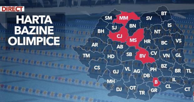 Aceasta este harta bazinelor care pot fi catalogate drept bazine olimpice și care sunt omologate. Pe lângă Capitală, Ilfov, Cluj, Braşov, Baia Mare şi Târgu Mureş, Vasluiul ar urma să aibă şi el un astfel de bazin în valoare de aproape 20 de milioane de euro, însă nu se ştie concret când.