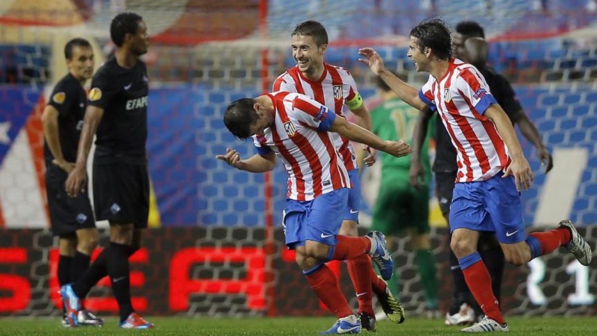 Din nou fără golgheterul Falcao, Atletico Madrid a câştigat pe teren propriu cu 2-1 în faţa portughezilor de la Academica de Coimbra. Toate golurile s-au marcat în repriza a doua, Diego Costa şi Emre punctând pentru iberici, în timp ce Cisse a redus din diferenţă pentru oaspeţi. Tot în grupa B, cehii de la Plzen au obţinut un succes important, 2-1 în deplasare cu Hapoel Tel-Aviv, şi au 6 puncte din trei meciuri.