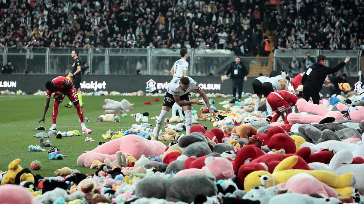 "Suporterii noștri au aruncat eșarfe, căciuli și jucării de pluș pe terenul arenei Vodafone Park pentru a fi oferite drept cadouri copiilor din zona afectată de cutremur", a comunicat clubul de fotbal Besiktas la finalul partidei.