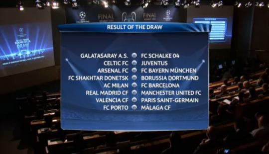 Schalke şi Juventus se pot considera norocoase în urma tragerii la sorţi, după ce au evitat Real Madrid şi vor juca cu Galatasaray, respectiv Celtic Glasgow.