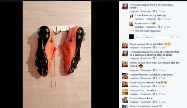 Atacantul și-a agățat la propriu ghetele-n cuier și a postat pe pagina personală de facebook imaginea însoțită de descrierea: ”A sosit vremea...”.