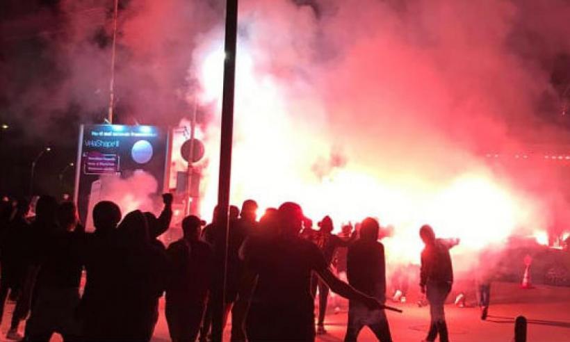 Grupul de suporteri a aprins mai multe torţe, creând o atmosferă incendiară în faţa hotelului. La un moment dat, una dintre torţe a declanşat un incendiu minor, stins de angajaţii hotelului, după cum se poate observa într-un film postat de reprezentaţi ai Peluzei Cătălin Hîldan pe pagina de Facebook.