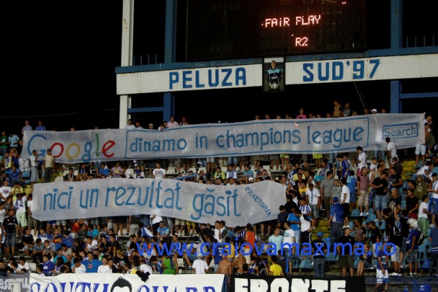 Fanii Craiovei i-au răsucit și ei cuțitul în rană directorului dinamovist, afișând pe parcursul meciului un banner cu mesajul "Google: Dinamo în Champions League, niciun rezultat găsit".