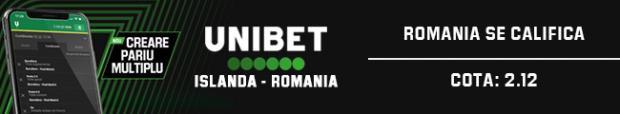 1. România se califică - 2.12 cotă la Unibet