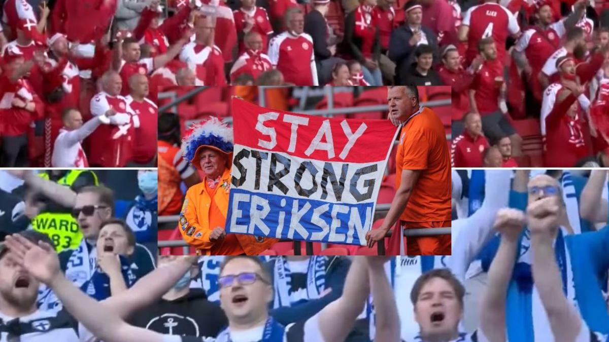 Momentul unic, în care fanii celor două ţări s-au unit pentru a-l încuraja pe fotbalistul prăbuşit pe teren, a durat câteva minute, până ce Eriksen a fost readus la viaţă şi transportat la spital.