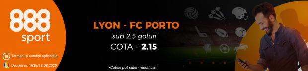 Astfel, se anunță un meci strâns, în care Lyon va încerca să profite de avantajul minim pe care și l-a asigurat în tur, iar Porto are nevoie de un singur gol pentru a reintra în joc. Ceea ce înseamnă că sunt șanse destul de bune să nu se înscrie mai mult de 2 goluri, pariu cotat foarte bine la 888sport, 2.15.