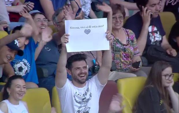 "Simona, vrei să fii soţia mea?", a fost mesajul pe care acesta l-a afișat din tribună.