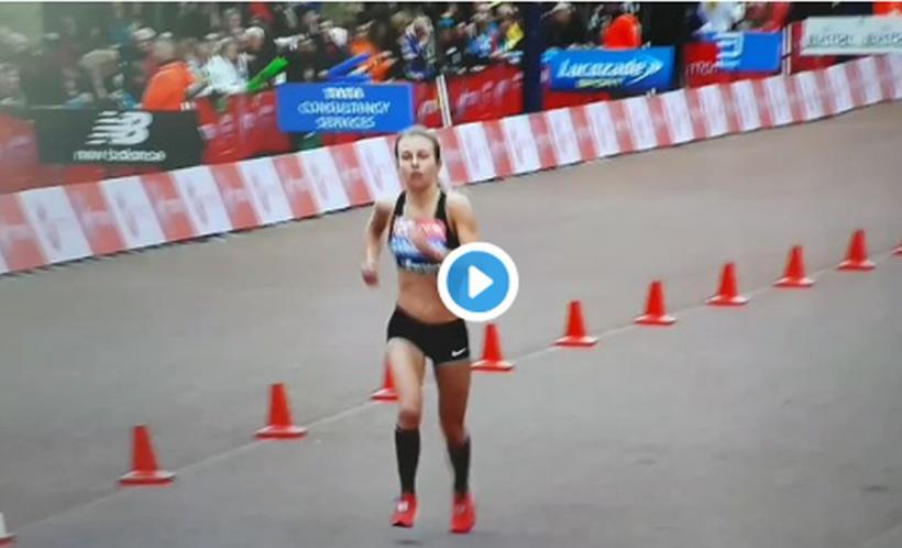 Cu doar doi metri înainte de sosire, atleta a cedat din cauza epuizării. Tânăra a încercat să se ridice, însă nu a mai putut.