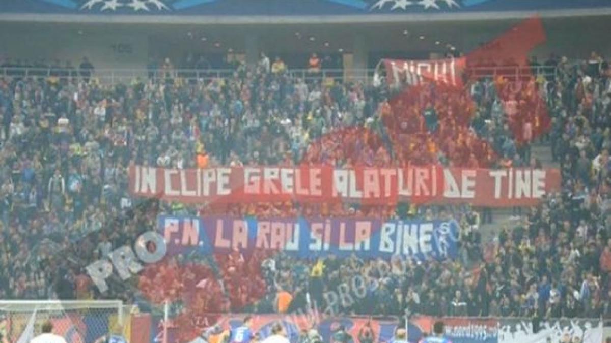 În semn de recunoştinţă faţă de artist fanii echipei Steaua i-au transmis acestuia un mesaj de susţinere, aseară, la meci.