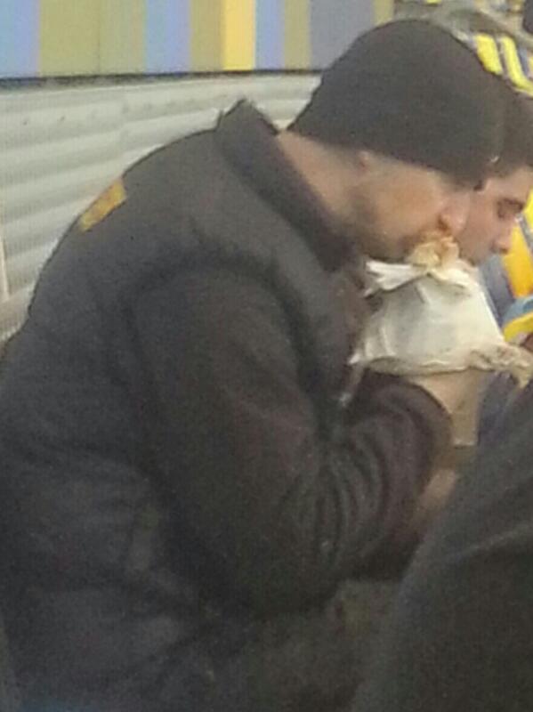 Un suporter român, venit la meci cu stomacul gol, a intrat pe stadion cu o SHAORMA în mână. Toţi din jurul lui salivau când l-au văzut.