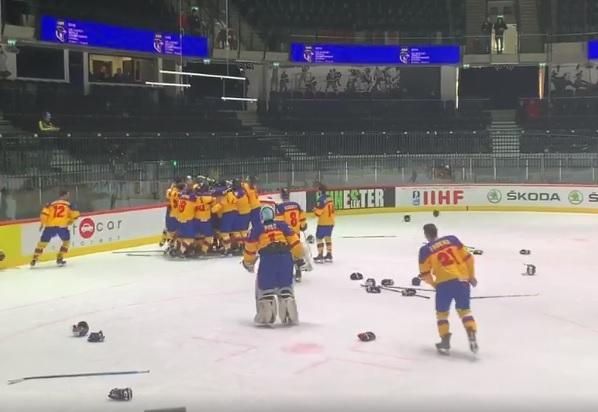 Selecţionata României a reuşit promovarea în al doilea eşalon mondial la hochei pe gheaţă, sâmbătă, după ce a câştigat Grupa B din Divizia I a Campionatului Mondial, la Tallinn (Estonia), în urma victoriei obţinute în faţa Olandei, cu scorul de 3-1 (1-0, 1-1, 1-0).