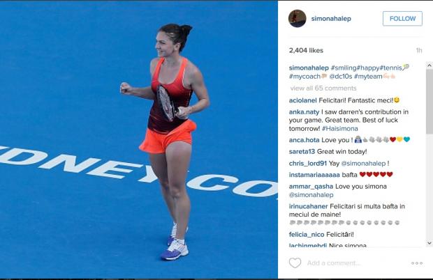 Hastag-urile sunt cele care completează ceea ce a vrut Simona Halep să transmită: simonahalep#smiling#happy#tennis
