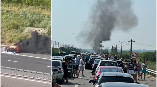 Val de accidente pe Autostrada Soarelui: o mașină a luat foc în mers, după ce s-au produs alte două coliziuni15 Iul