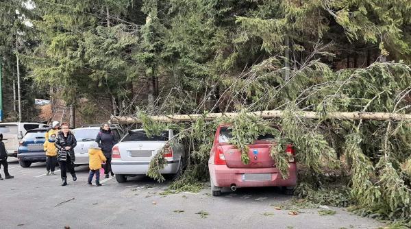 Un brad a căzut peste trei mașini parcate în Poiana Brașov. Proprietarii au o pagubă de mii de euro08 Ian