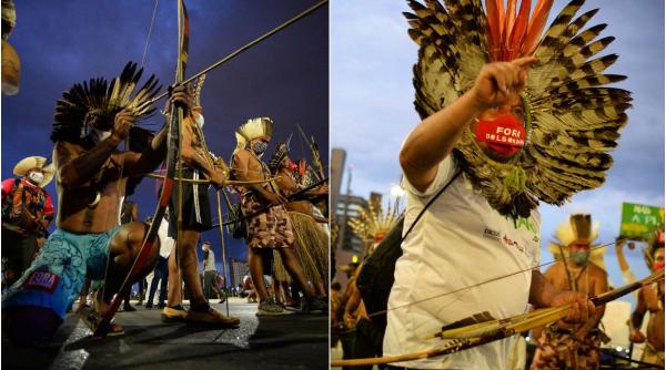 Polițiștii brazilieni au fost goniți cu săgeți la un protest al indigenilor