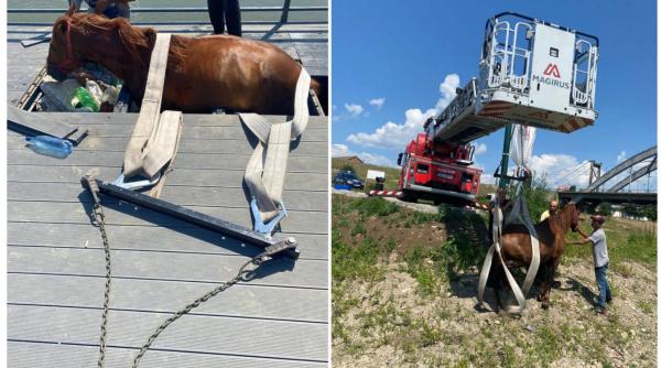 Un cal a rămas blocat pe un pod vechi din Ocna Mureș. O tablă de fier a cedat sub greutatea lui13 Iul