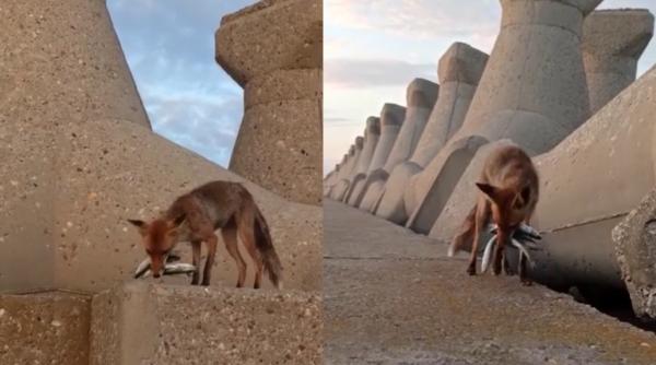 Vulpe filmată în timp ce "culege" pești de pe digul din Portul Constanța: "I-ai scăpat, ce-ai făcut?"05 Iun