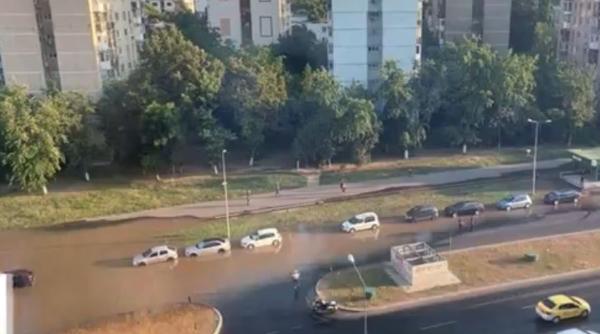 O stradă întreagă sub apă, în Capitală, din cauza unei conducte sparte. Fântână arteziană în mijlocul drumului10 Aug