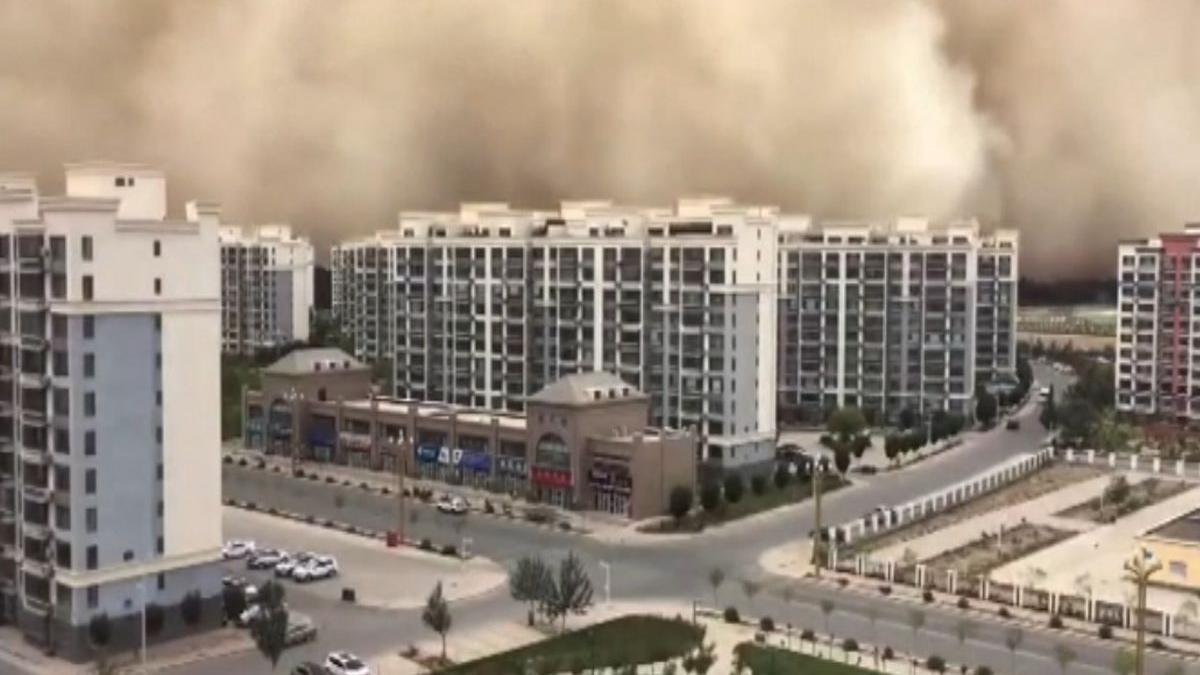 Momentul când un zid de nisip de 100 de metri lovește un oraș, în China