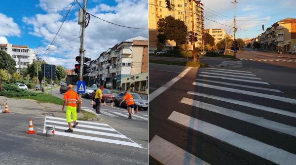 Trecere de pietoni care se oprește în stâlp, proaspăt vopsită pe o stradă din Slatina. Imaginile au stârnit glume și ironii pe internet22 Sep