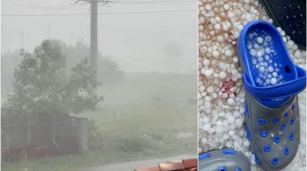 Ploile torențiale și grindina au făcut prăpăd în țară. Străzile au fost acoperite de mormane de gheață, în Dolj06 Mai
