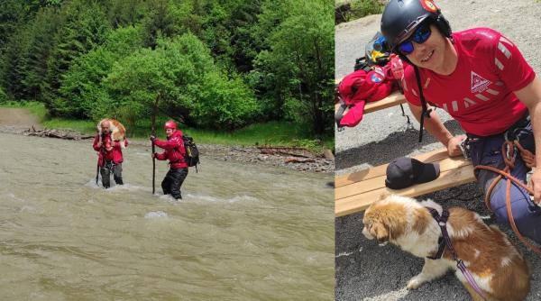 Salvamontiștii s-au chinuit opt ore să salveze un câine de pe malul unui râu: Îl hrăneau turiștii din Mocăniță, aruncând mâncare peste apă07 Iun