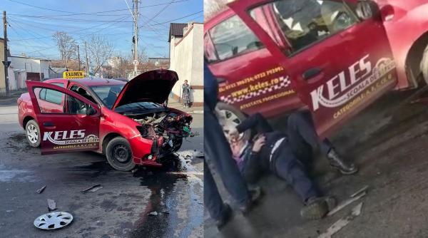Elevul unei școli de șoferi a provocat un accident în timpul probei practice, în Brăila. Polițistul examinator a fost rănit04 Ian