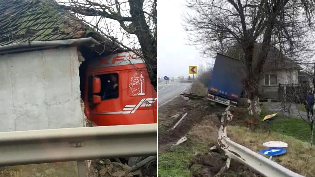 Casă distrusă a patra oară de un TIR, şoferul şi-a aprins o ţigară în cabină, în Şimand